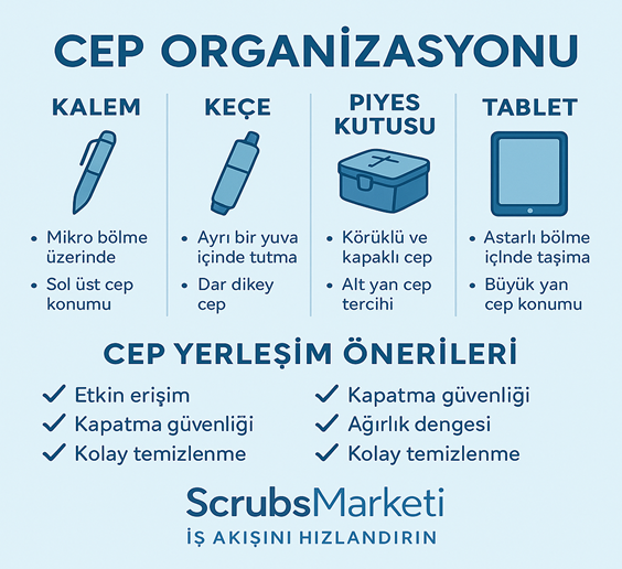 Neden Cep Organizasyonu Önemli?Hastane ve kliniklerde cep organizasyonu verimliliği doğrudan etkiler; ihtiyacınız olan kalem, keçe ...
